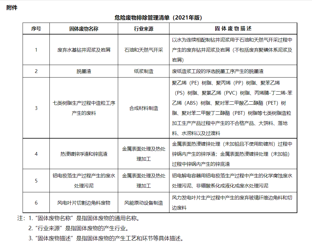 近日,生態環境部公布《危險廢物排除管理清單(2021年版)》,明確清單要求的固體廢物不屬于危險廢物。