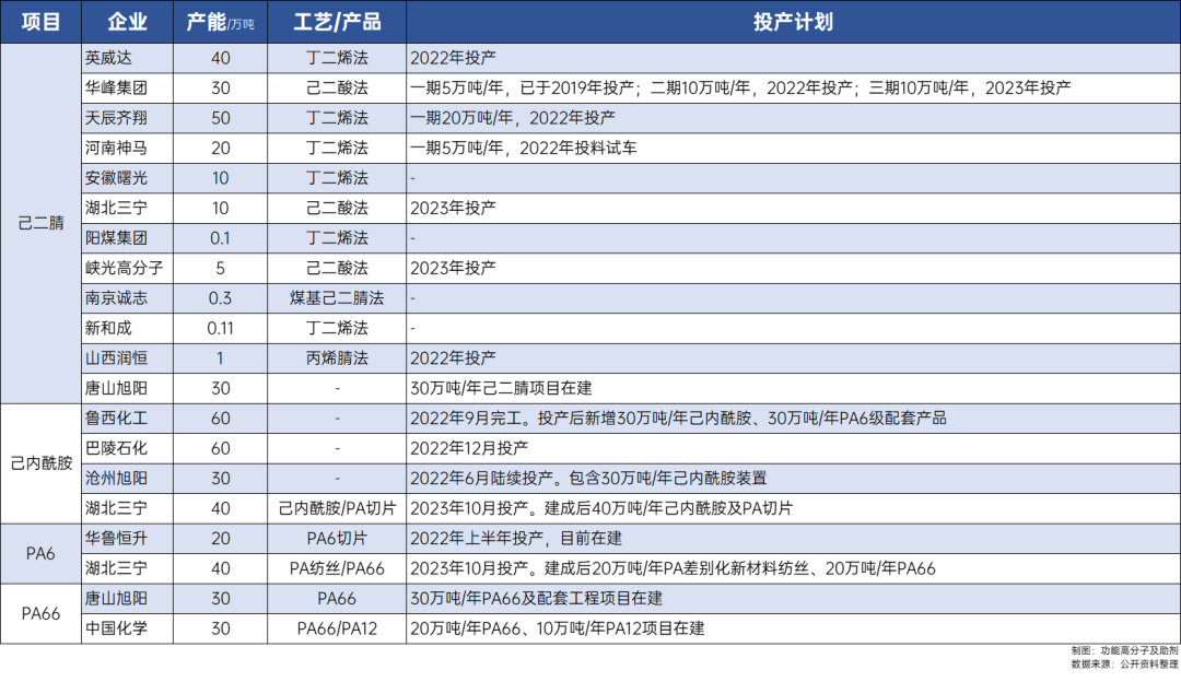 在這里我們也簡要盤點了2022年我國和尼龍相關的項目規劃和產能布局: