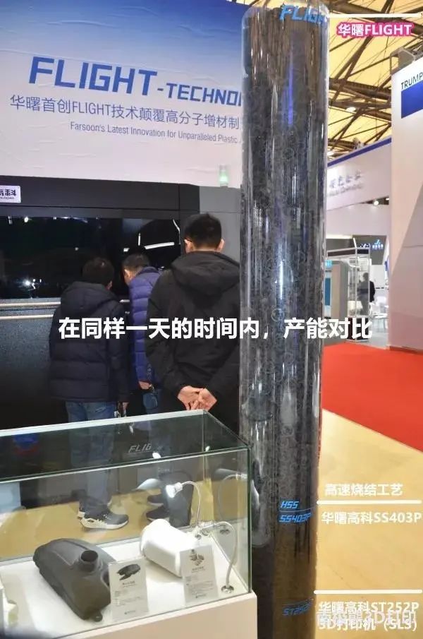 此外,華曙高科的Flight™技術采用了更強大的500W光纖激光器,使其速度能夠比HSS工藝還要快,通過下圖也能看出在一天時間內產能比SLS和HSS工藝高出數倍,使得3D打印量產成為可能。(下圖右側自上往下分別為Flight™技術、HSS高速燒結、SLS燒結工藝的日產能)
