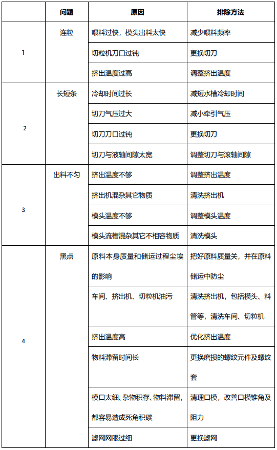四、ABS家電色母粒生產(chǎn)中出現(xiàn)的問題及解決辦法
