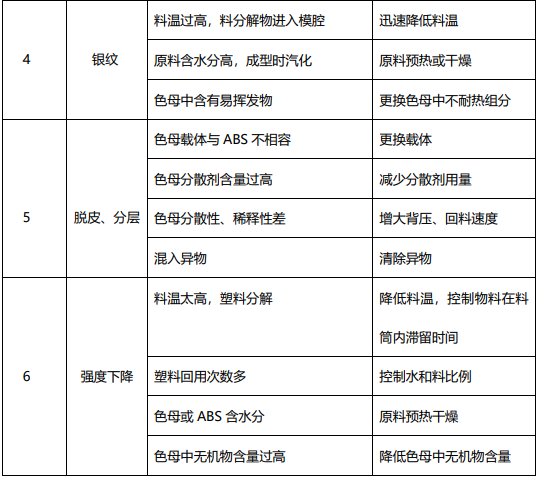 五、ABS家電色母粒應(yīng)用中出現(xiàn)的問題及解決辦法