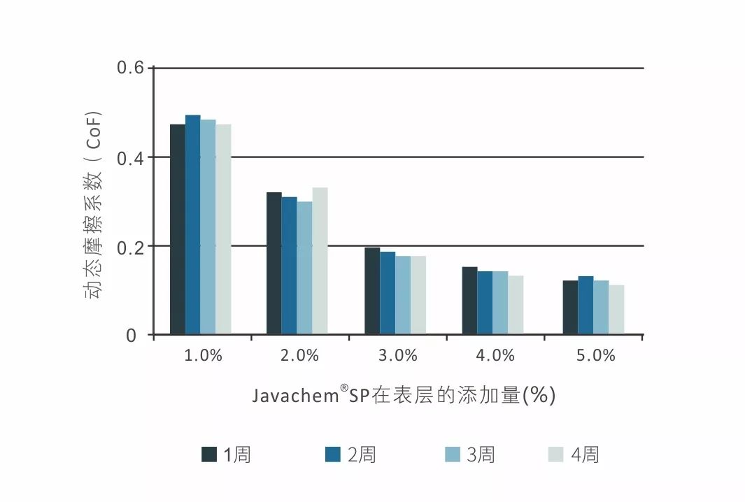 與傳統(tǒng)類型的爽滑劑不同,Javachem®SP 與聚烯烴材料相容性好,具有出色的熱穩(wěn)定性,賦予聚烯烴薄膜長效持久且優(yōu)異的爽滑性能。在較小添加量下,Javachem®SP 即可明顯降低薄膜的表面摩擦系數(shù),有效解決酰胺類爽滑劑在應(yīng)用中摩擦系數(shù)變化大、易析出、熱穩(wěn)定性差等缺陷。
