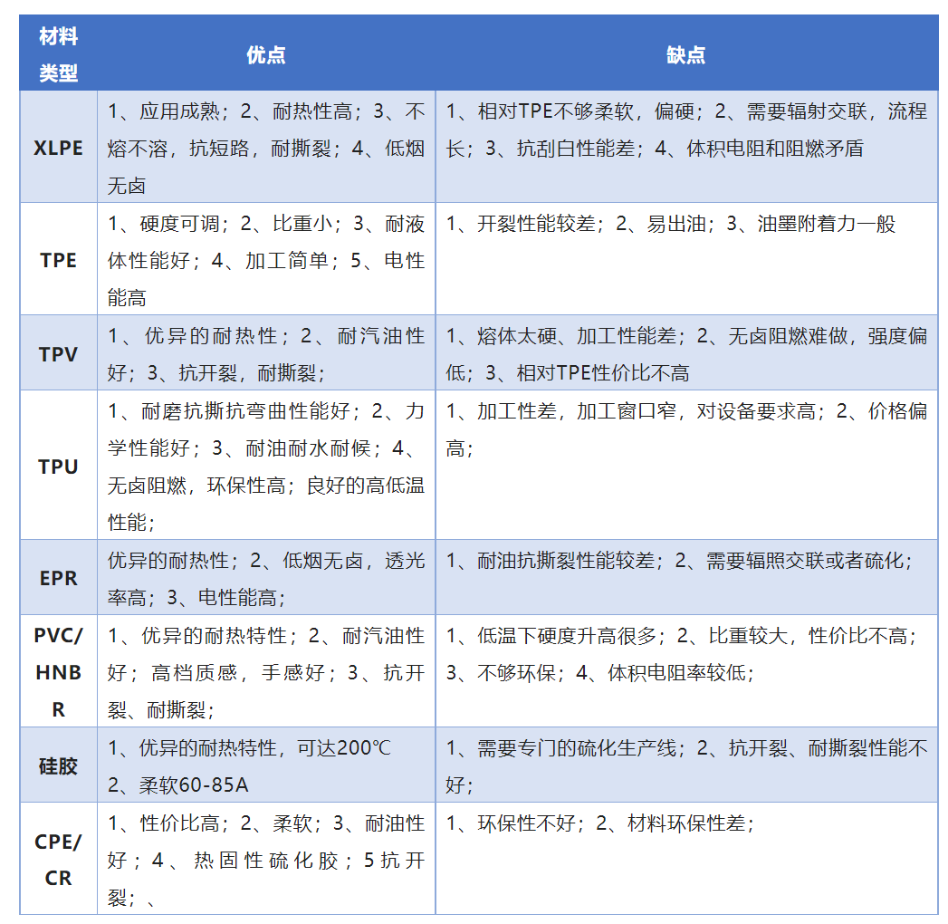 不同于傳統的電線電纜,汽車電纜因為其具有應用環境的特殊性,對材料具很高的要求。除了保證絕緣性同時還要具有一定的耐高溫、耐老化性能,并且在燃燒時具有無鹵阻燃和低煙密度。