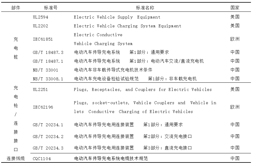 表 1 充電設(shè)施國內(nèi)外標(biāo)準(zhǔn)匯總