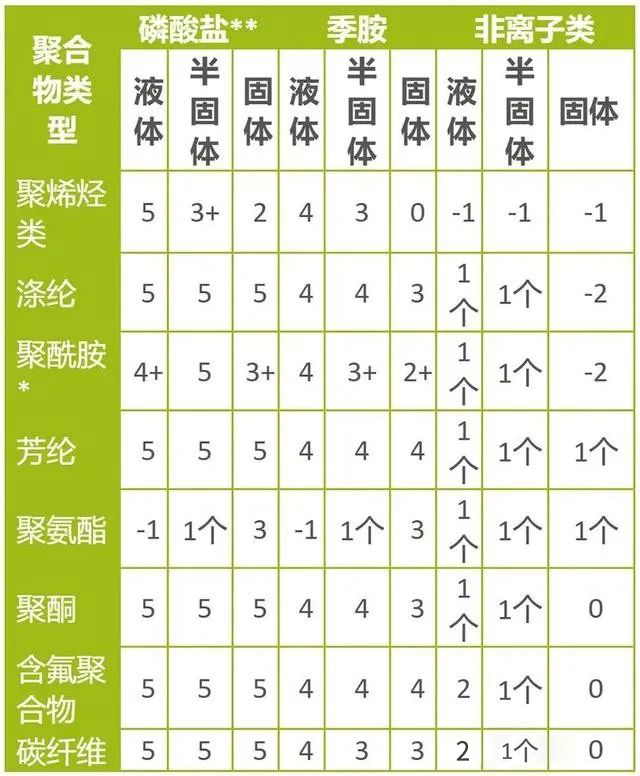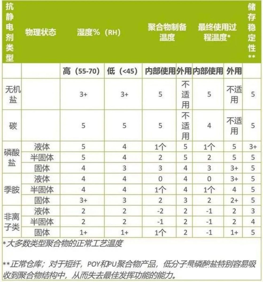 聚合物的一般類別與抗靜電劑結合使用效果良好。如果摻入可行,則認為無機鹽和碳與所有聚合物體系完全相容。