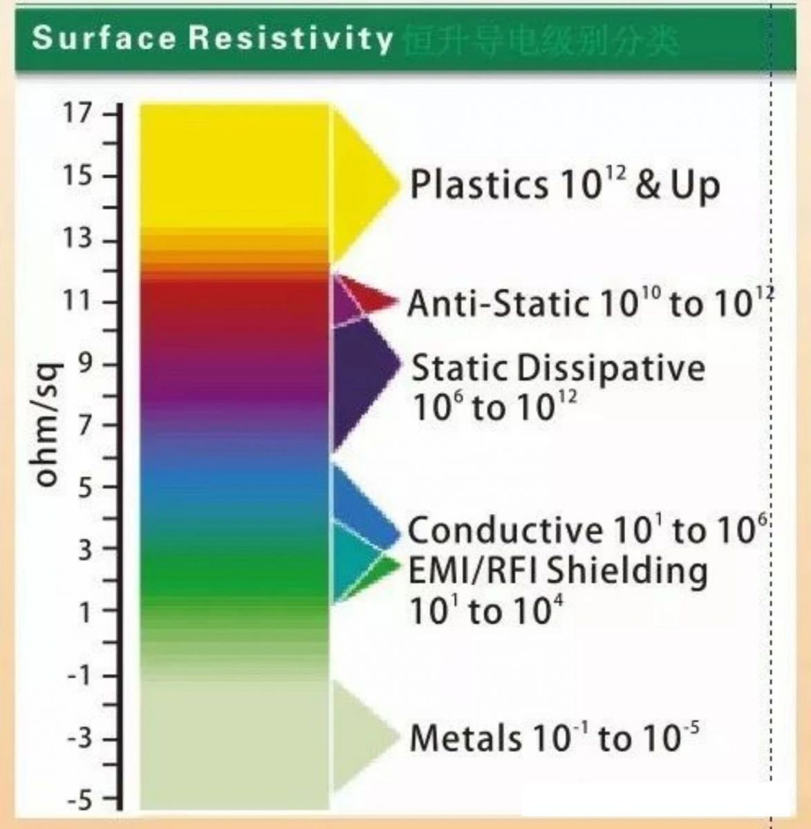 評估抗靜電劑性能的常見測試是電阻率測試。結果表示為電阻率的對數。通常,將抗靜電性能指定為特定濕度條件下的最大允許 log R。下表很好地反映了抗靜電效果好的數值范圍。