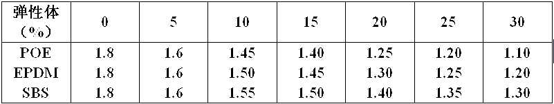 可以添加的彈性體包括 POE、EPDM、SBS 等,各類彈性體對塑料收縮率的影響接近,具體見表 9。