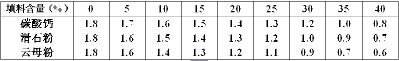 例如,在 PP 中加入相同含量的各類填料其對 PP 收縮率的影響見表 3。