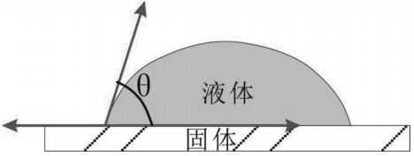 水霧的產生是因為水蒸氣與薄膜表面的接觸角過大,導致水蒸氣無法潤濕薄膜表面,從而形成水霧。接觸角 θ 是衡量液體對固體表面潤濕性能的重要指標,液體能否潤濕固體表面取決于接觸角 θ 大小,接觸角 θ 示意圖如圖1。