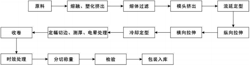 圖 5 BOPP 防霧滴薄膜生產工藝流程圖