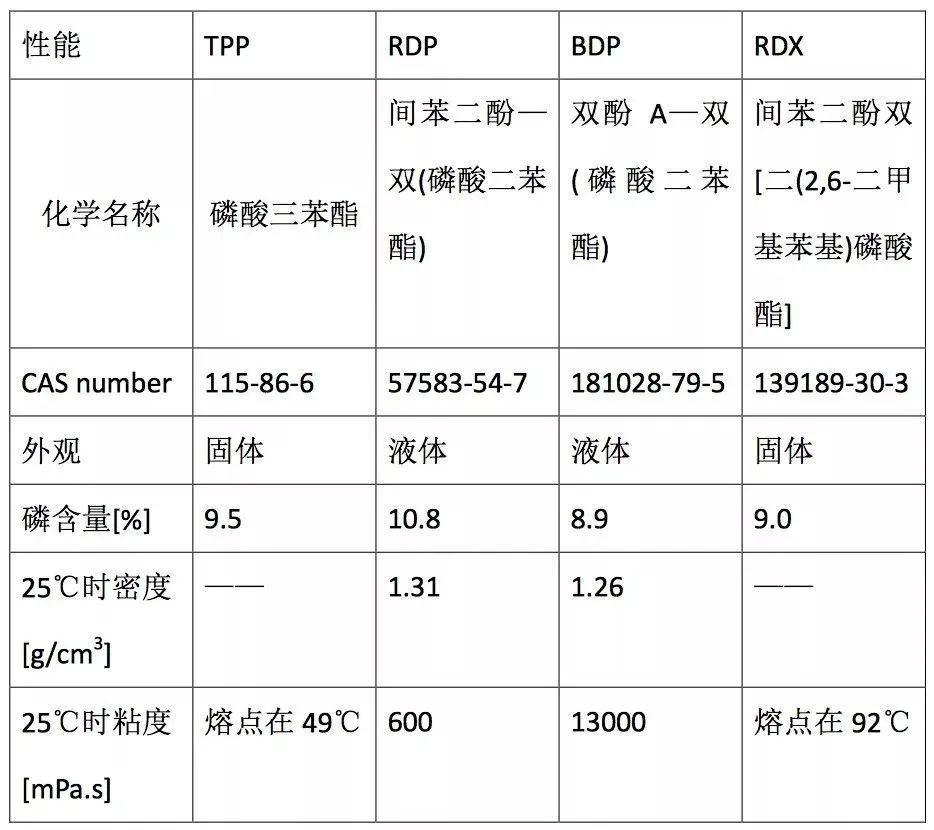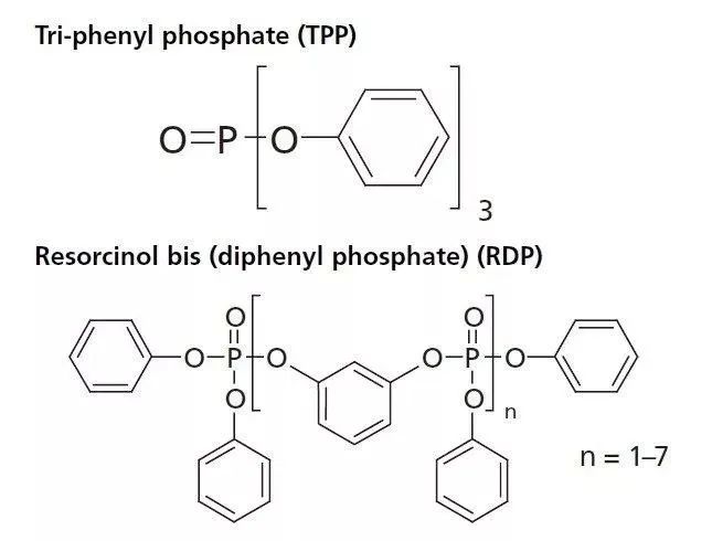 TPP、RDP、BDP、RDX 這四種含磷的化合物,都是無(wú)鹵的,并且都是磷酸芳酯。這四種化合物,既能用在 PC/ABS 合金材料,也能用在 PPE/HIPS 混合物中。