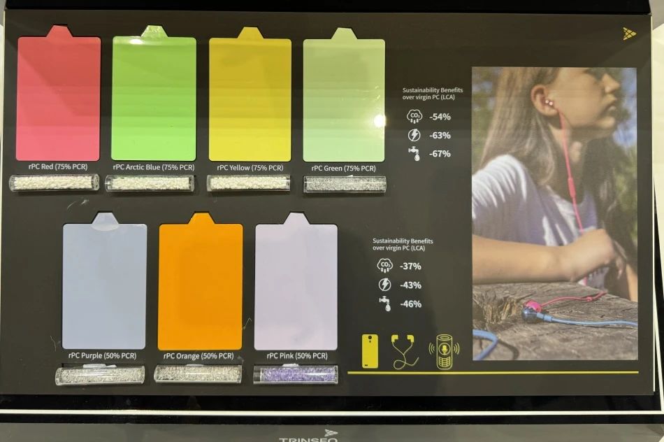 TRINSEO 展示了不同 PCR 含量的回收 PC,PCR 含量最高可達 95 %。