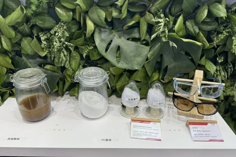 三菱化學株式會社展出的生物基工程塑料 DURABIOTM 不含 BPA,主要采用了從玉米中提取的異山梨醇,減少對石油的依賴性。