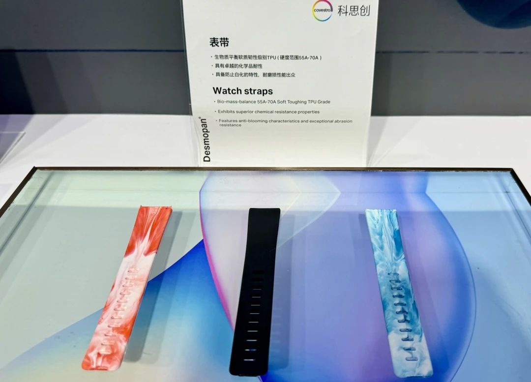 科思創的生物質平衡軟質韌性級別 TPU 制成的表帶,這款生物基 TPU 具有卓越的化學品耐性、防止白化等特性,耐磨損性能出眾。