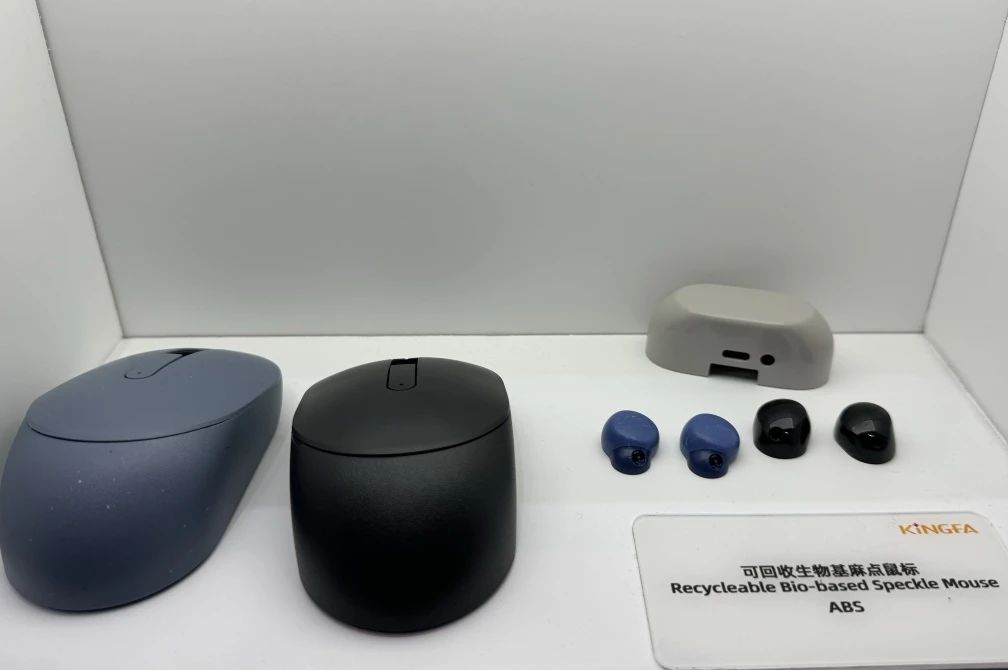 金發科技本次展示了可回收生物基 ABS 制成的麻點環保鼠標。