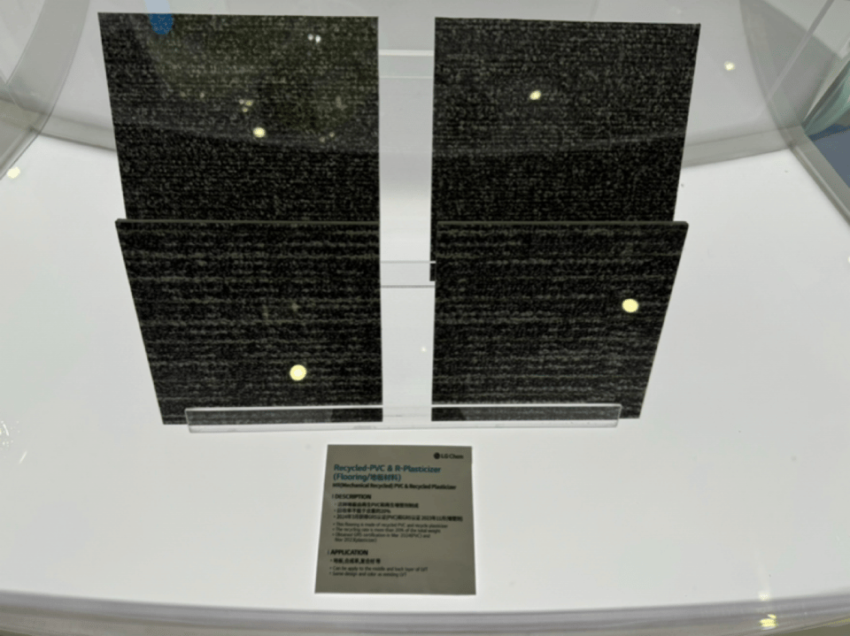 LG 化學本次推出了一系列再生材料,比如再生地板材料,這種地板由再生 PVC 和再生增塑劑制成,回收率不低于總量的 20 %。