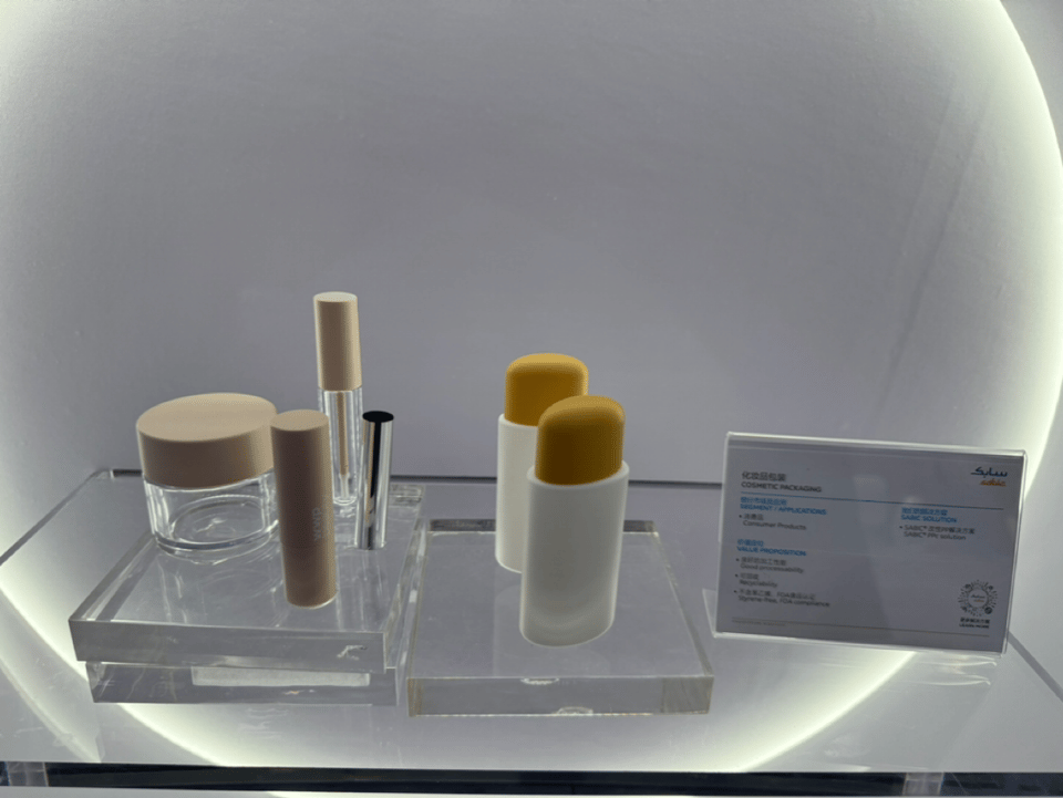展臺中還展示了 SABIC®PPc 具有良好的加工性能,不含有苯乙烯,可以應用在化妝品包裝領域。