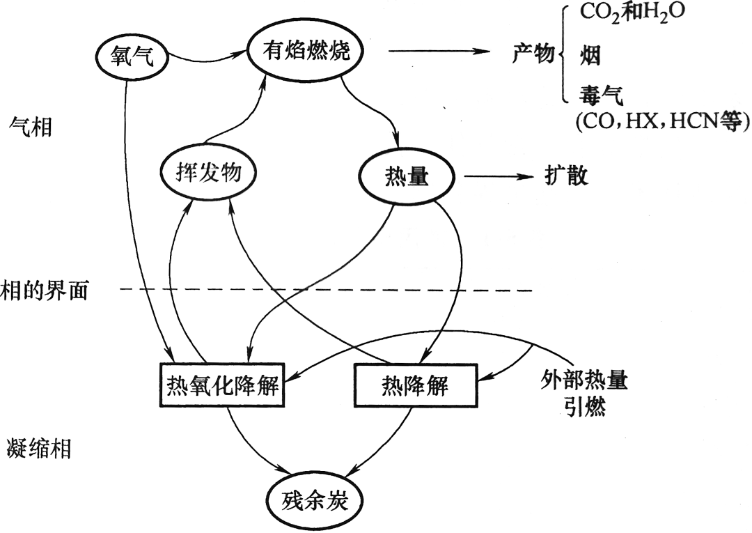 塑料的燃燒過程是一個非常激烈復雜的熱氧化反應,具有冒濃煙或熾烈火焰的特征。塑料燃燒的一般過程可分為 5 個基本階段。