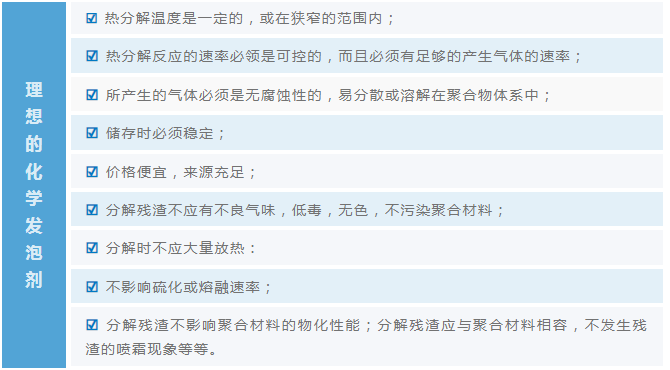 理想的化學發(fā)泡劑應具備如下性能: