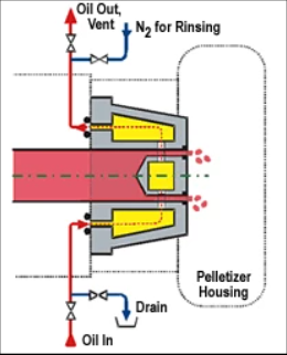 與拉條造粒相比,水下造粒具有顆粒質量好、自動化程度高、成本低等優點。但是,與諸如聚乙烯、聚丙烯或聚苯乙烯等不太敏感的商品樹脂相比,在生產諸如上段所提的工程樹脂時,模具凍結的風險更大。