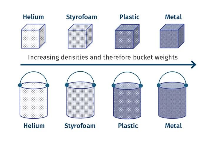 這些桶的容量相同,但由于密度不同,重量也不同。來源:Suhas Kulkarni
