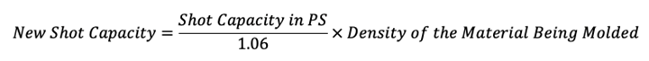 近年來,除了 PS 的最大注射重量外,機器制造商還開始以體積為單位發布機器的最大容量,因為體積與材料或其密度無關?,F在由加工商根據成型材料計算出最大注射重量。在這種情況下,成型商必須使用熔體密度來準確計算注射容量。使用固體密度會得到一個更高的數字,因此是不正確的。加工商傾向于將固體密度數字乘以 0.70 到 0.80 之間的系數來估計熔體密度。