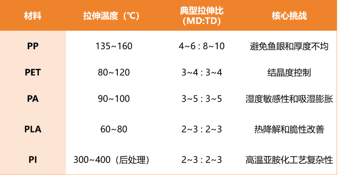綠色工藝:可降解材料(PLA、PBS)的拉伸工藝優化,降低能耗。