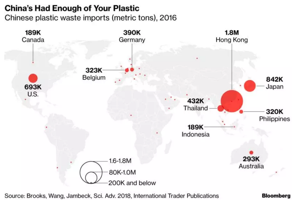 報告顯示,盡管規模不如中國,但像印度、越南、馬來西亞等國已經在進口更多塑料垃圾,不過,越南近期還因裝載塑料垃圾的船只堵塞港口而暫停進口。